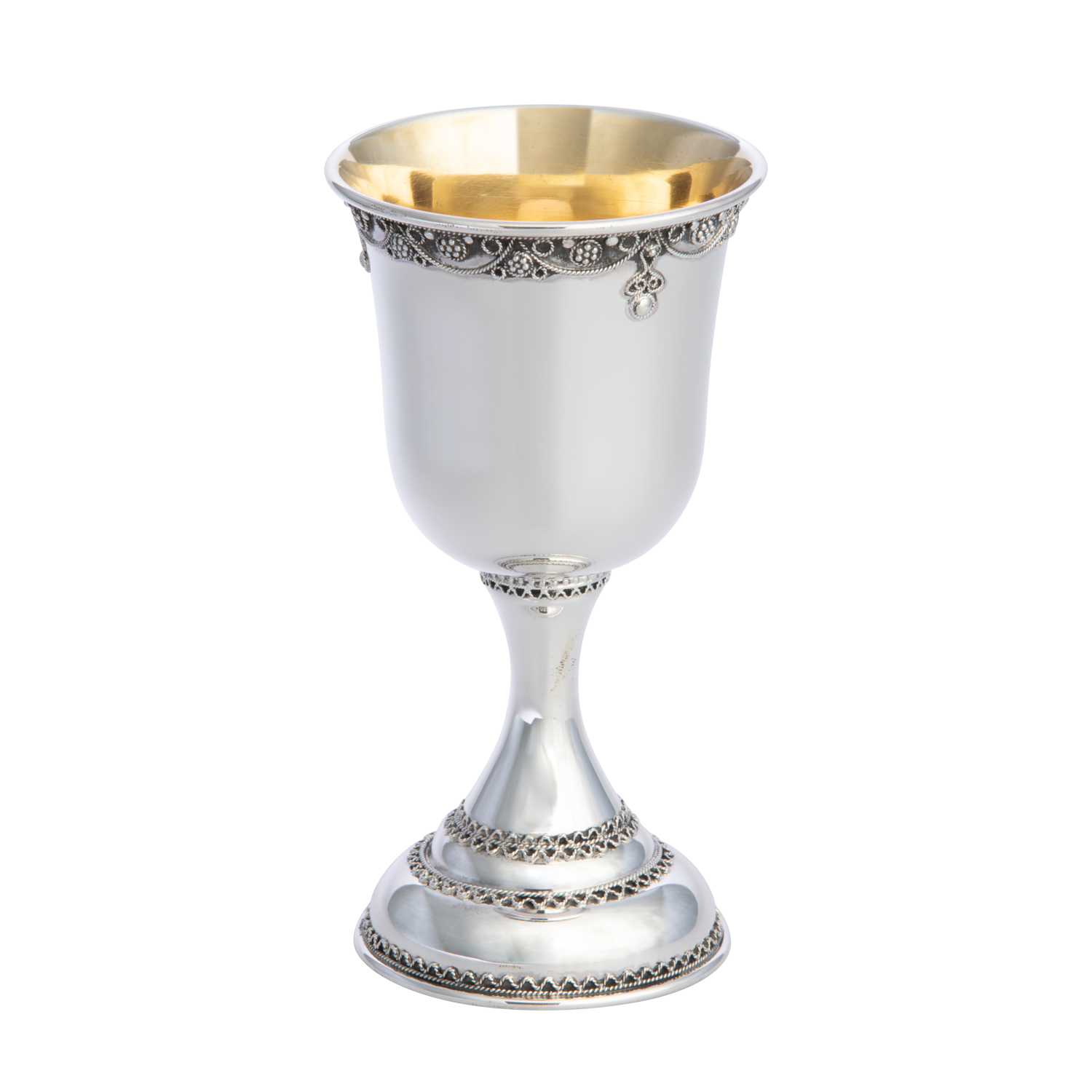 All our kiddush cups have 24 carat gold plating on the inside to preserve the natural taste of the wine