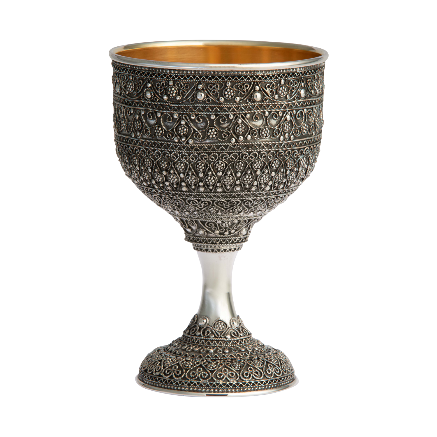 All our kiddush cups have 24 carat gold plating on the inside to preserve the natural taste of the wine